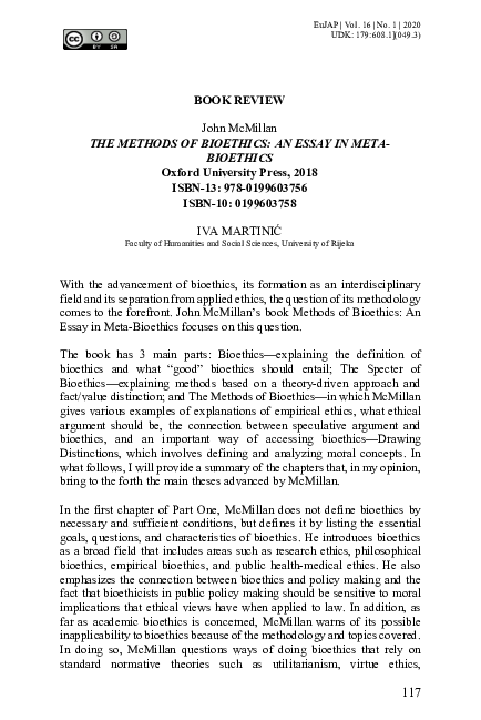 Pdf Book Review John Mcmillan The Methods Of Bioethics An Essay In Meta Bioethics Iva Martinic Academia Edu
